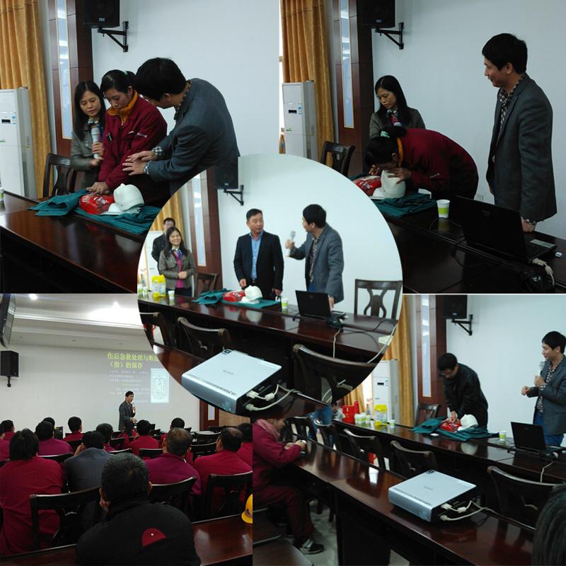 現(xiàn)實生活中,遇到突發(fā)傷害事故,有時只需要稍懂一點現(xiàn)場急救知識,舉手之間很可能就能挽救一個人的生命。2015年11月14日由安徽省立醫(yī)院急救科帶領(lǐng)的專家醫(yī)師來到我公司普及現(xiàn)場急救及外傷事故急救的知識。